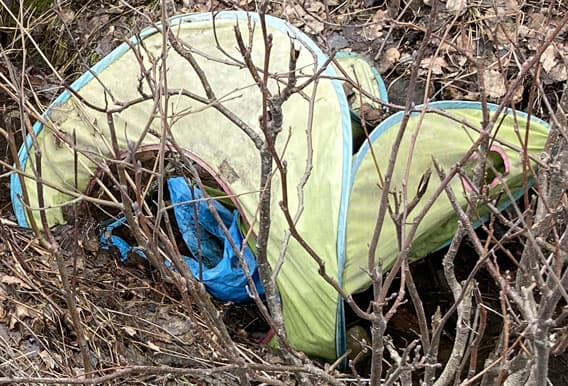 Verkar som skräpet aldrig tas bort utan det får ingå i växtligheten för att långsamt brytas ner.